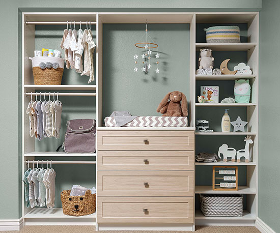 Our kids closets can be made into fully adjustable systems that help keep your kids organized and can be changed as quickly as they do! Some of our favorite kids closet perks include: